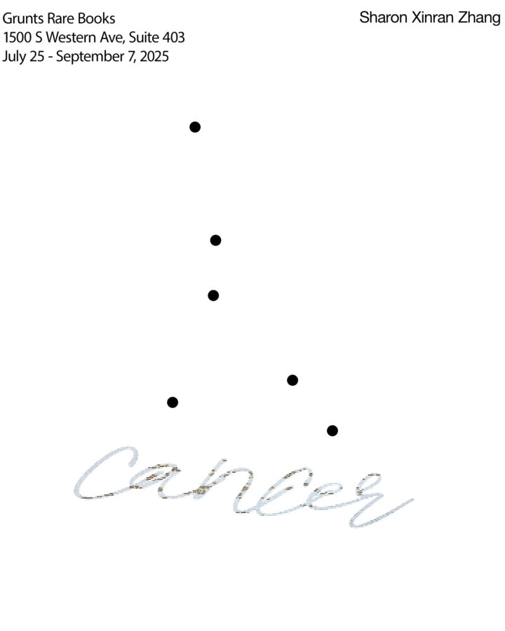 Grunts Rare Books is proud the present Cancer, a solo exhibition by Sharon Xinran Zhang.