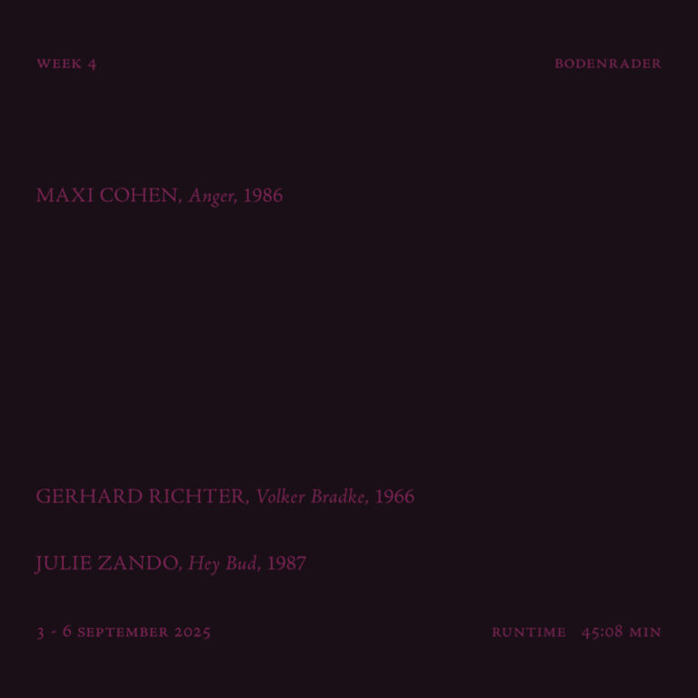 Tags: Alix Pearlstein, Aurelia Mihai, Bodenrader, Cecelia Condit, Chicago, Christopher Harris, Dora Budor, Frank Heath, Gary Hill, Gerhard Richter, Julie Zando, Leslie Thornton, Maxi Cohen, Mike Kelley, Noah Barker, Renée Green, Ron Vawter, West Town, Yvo Cho