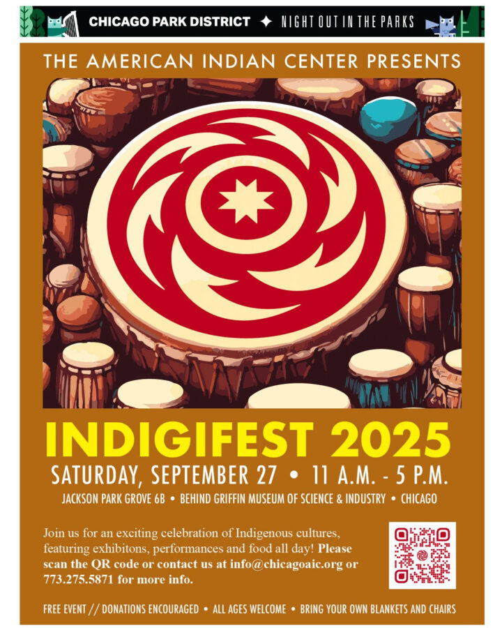 Led by the American Indian Center in partnership with the Chicago Park District’s Night Out in the Parks program, Indigifest brings together music, dance, food, art, and community in a day filled with connection and celebration.