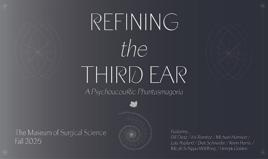 Over four concerts artists premier third ear music — music which emphasizes the listening faculty as an active instrument. The late composer Maryanne Amacher appropriated the term third ear to describe a music that expands the latent perceptual capabilities of the ear, composing music that transforms the ear itself into a sound-producing, neurophonic instrument. Such music is a projection of new aesthetic forms, a virtuality that anticipates the augmentation of both the creative and listening process. If Amacher’s ambitious work was to make the third ear, we ask what it would mean to refine the third ear, to compose music for and with it. We aim to explore how we apperceive musical material, and the ways in which new harmonic experiences can cultivate new emotions and stimulate the imagination.
