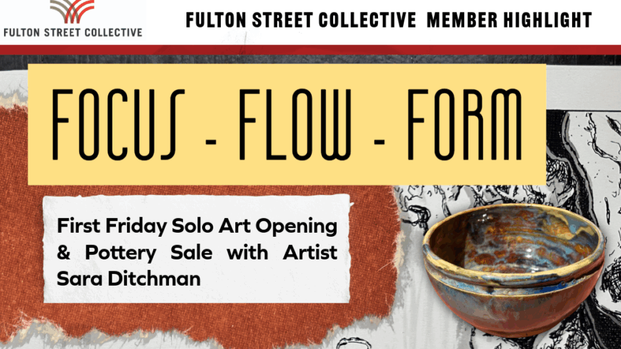 Sara Ditchman is a visual artist with 13 years of ceramic experience and a BFA from University of Wisconsin, Platteville. Since 2023, she has been an artist at Fulton Street, where she now works as Membership Coordinator. This summer she moved into her third-floor studio, invested in her space, and installed a kiln that has expanded her practice in transformative ways. Her work explores focus, flow, and form—ranging from experimental sculpture that emphasizes material exploration and assemblage, to two-dimensional work that pushes shapes beyond the physical realm, and most recently to functional pottery that celebrates proportion, touch, and form.