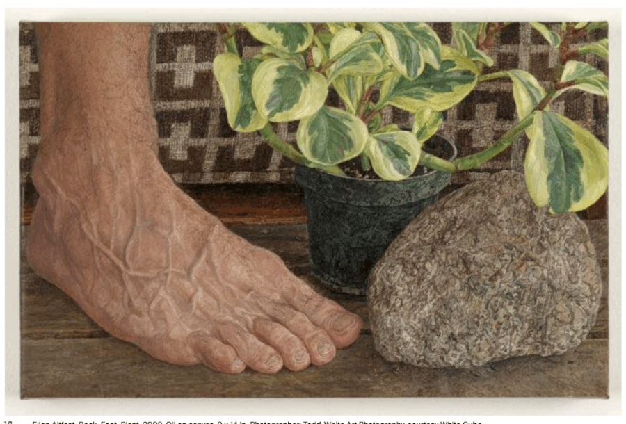 Ellen Altfest: Forever is a selection of 15 oil paintings by the American representational painter Ellen Altfest, known for her painstakingly labor-intensive canvases and her observation of things in the world often overlooked in art. From roughly tactile rocks, tangled branches, and tree bark, to the smoothness of houseplants, fabric, and men’s skin—she condenses everyday essences into expressions of absolute clarity and intensity. Her paintings are characterized by surprising pairings of subjects, unorthodox cropping, and, perhaps most notably, scrupulously rendered naturally occurring textures and intricate surface features. Working directly from observation without photographic sources or references, she often spends months—and sometimes more than a year—on a single painting. Ellen Altfest: Forever is organized by the Frist Art Museum, Nashville, Tennessee, where it premiered earlier this year, and is curated by Mark Scala, Chief Curator, Frist Art Museum. Ellen Altfest: Forever is presented at Wrightwood 659 by Halsted A&A Foundation.