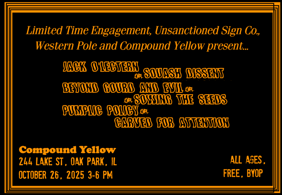 Tags: Compound Yellow, Jack O'Lectern /or/ Beyond Gourd and Evil /or/ Pumplic Policy /or/ Squash Dissent /or/ Sowing the Seeds /or/ Carved for Attention, Jesse Malmed, Oak Park