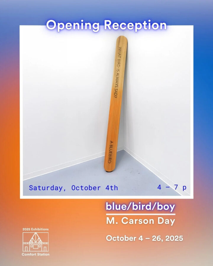 M. Carson Day (b. 1989) is a Chicago-based artist interrogating American capitalism with poetics and deadpan humor. Invoking his professional experience as an artist assistant and fabricator, his practice attempts to balance prop comedy and critical theory, where the fabricated object and the found object meet as the physical junction of art, work, value, class, Americana and satire. He has studied art at Indiana University Bloomington, Glasgow School of Art in Glasgow, Scotland, Scuola Internazionale di Grafica in Venice, Italy and the University of Illinois Chicago (UIC), where he received an MFA in 2025.