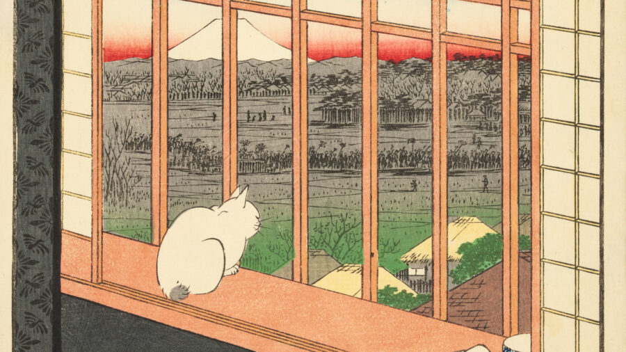 Ukiyo-e, meaning “pictures of the floating world,” was a genre of woodblock print popular from the 17th through 19th century that depicted scenes of everyday life across Japan. Hiroshige’s designs are among the most widely circulated of any premodern print artist, and because of his prints’ popularity, editions ran into the thousands.