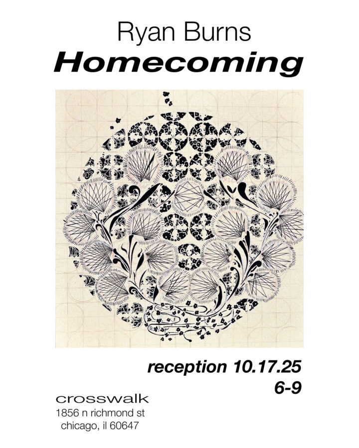 After a decade of running cleaner gallery out of 1856 n Richmond st, Ryan Burns returns for his solo show, “Homecoming” at crosswalk.
