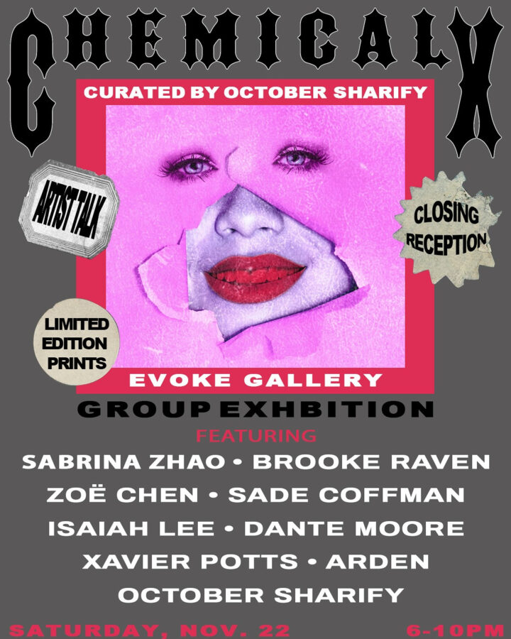 Tags: ARDEN, Belmont Craigen, Brooke Raven, Chemical X, Chemical X: Artist Talk & Closing Reception, Chicago, Dante Moore, Evoke Gallery, Isaiah Lee, October Sharify, Sabrina Zhao, Sade Coffman, Xavier Potts, Zoe Chen