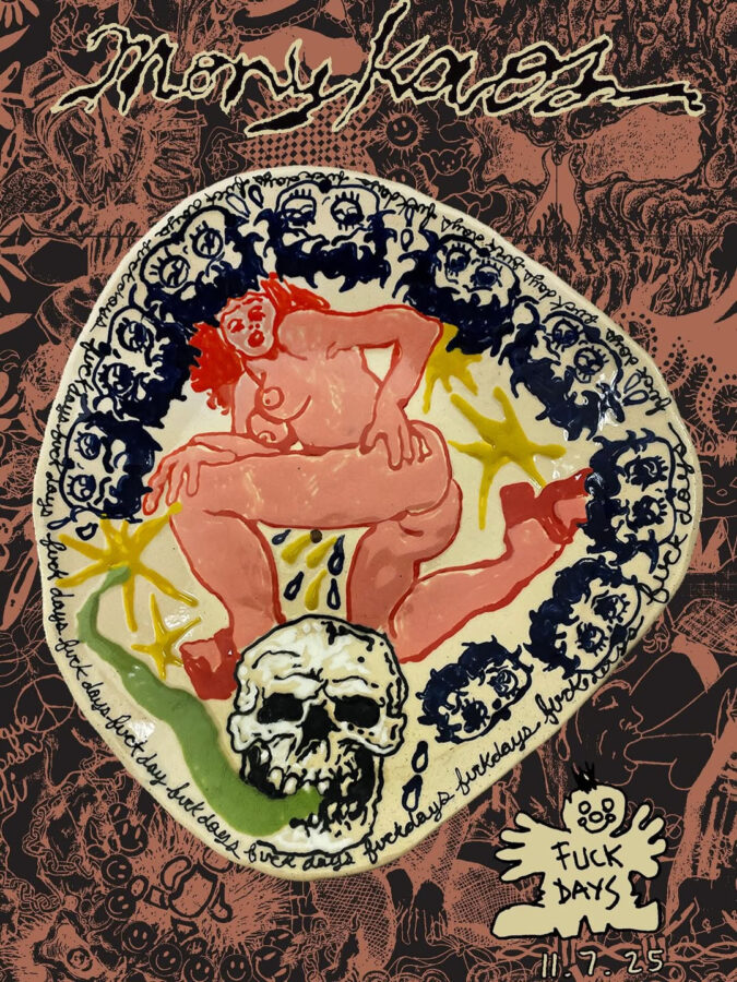Hoofprint is pleased to present “FUCK DAYS,” an exhibition of new drawings, ceramics, and silkscreen prints by Mony Kaos, a queer, punk artist based in Chicago. Join us at the opening reception for refreshments & music from Dj Spawn.