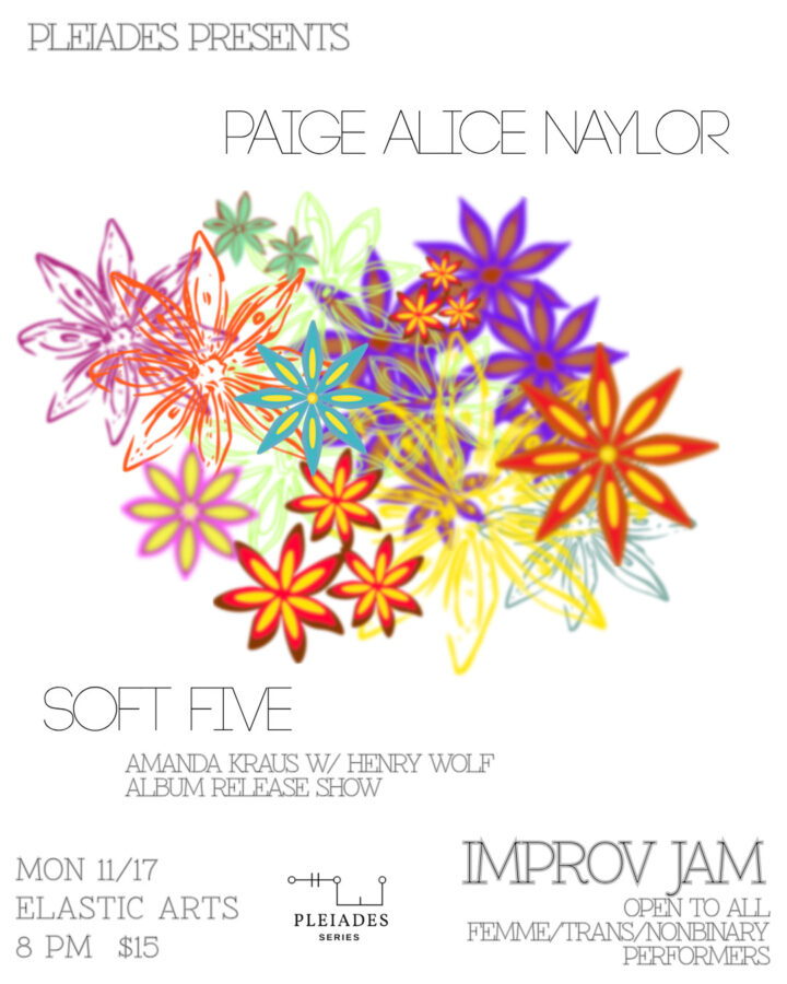 November’s Pleiades Series serves as a record release celebration for Amanda Kraus’ project Soft Five! We’ll also hear from abstract voice/electronics composer Paige Alice Naylor. It will be a very special Monday night!
