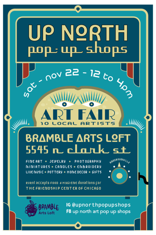 Chicago, IL – Up North Art Pop-up announces a lively art show on November 22, 2025, at Bramble Arts Loft in Chicago, featuring local artisans showcasing handmade artwork, jewelry, candles, pottery, and stained glass, along with live music performances and a food and hygiene product drive benefiting The Friendship Center of Chicago.