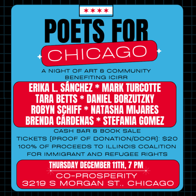 Poets for Chicago will spotlight writers and artists standing in solidarity with immigrant and refugee communities across Illinois who continue to face systemic challenges and federal hostility. All ticket, book, and refreshment sales will directly support ICIRR’s mission to build a more just and welcoming state for all.