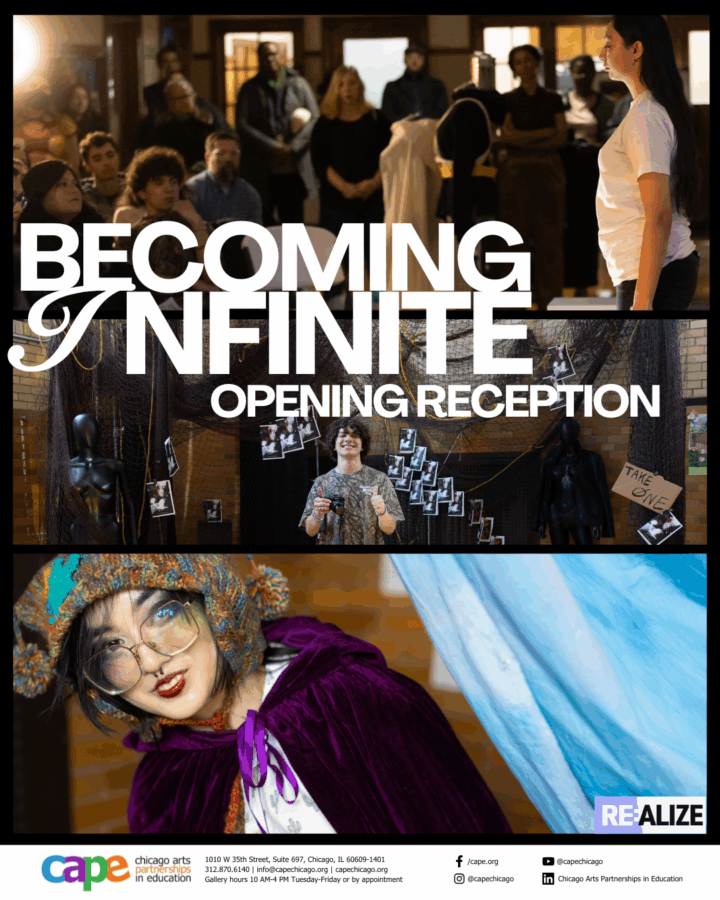 Join us in celebrating the next generation of artists at the Becoming Infinite opening reception, featuring the visionary work of RE:ALIZE’s young creatives. This showcase explores growth, transformation, and the boundless nature of creative identity. Through dance, media, music, theater, and visual arts, these artists confront the limits of self and society—reimagining what it means to evolve, to expand, and to become infinite.