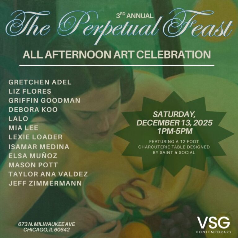 Tags: Chicago, Debora Koo, Elsa Muรฑoz, Gretchen Adel, Griffin Goodman, Isamar Medina, Jeff Zimmermann, Lalo, Lexie Loader, Liz Flores, Mia Lee, Taylor Ana Valdez, The Perpetual Feast, VSG Contemporary, West Town