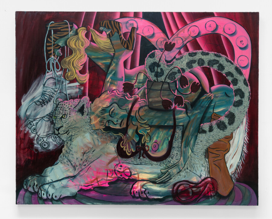 A solo exhibition of paintings by Lindsey Kircher. The exhibition gathers a group of recent figurative works that stage psychologically charged scenes populated by women, animals, and symbolic objects. Through dense compositions and saturated color, Kircher constructs theatrical environments that blur the boundaries between interior life and performance.