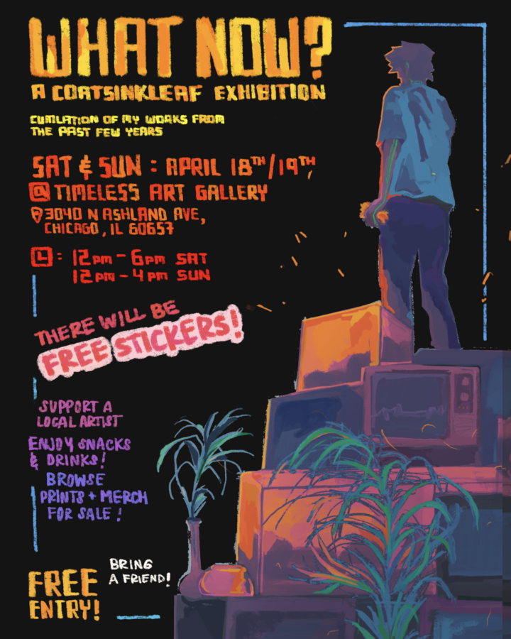 COATSINKLEAF is heading back to the other side of the world, perhaps sooner than later, so this is the official going away party exhibition of his works from the past several years, going into his college years and beyond.