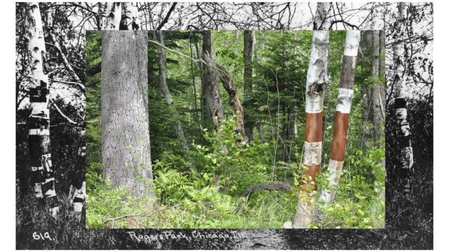 Nora Moore Lloyd, Lac Courte Oreilles Band of Lake Superior Ojibwe, born 1947 was trained as a photographer and videographer. She works in multiple mediums to create artworks that document the stories of Indigenous elders and to connect with cultural practices related to harvesting birch bark and wild rice. Nora has been an active member of Chicago’s Native American community for decades. Her work has been shown in national museums in Bolivia and Guatemala, “Woven Being” exhibition at Block Museum and a recent solo exhibition at Illinois State Museum. Her interest in nature has expanded to rescuing injured raptors & large water birds.