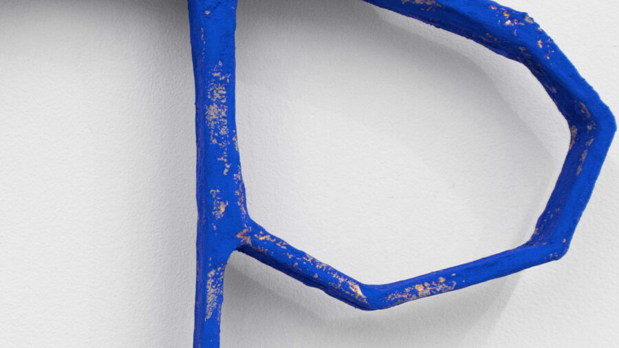These sculptures also operate as “helping” verbs, verbs linking a subject to a noun or a description. Like the words in the show’s title, the works purposefully point to others in the room, and to the room itself. In this way the pieces slip between verb, subject, object, singular and plural. Modest but multifaceted.