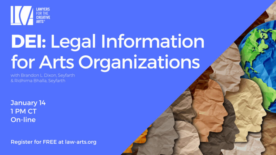Tags: Brandon L. Dixon, DEI: Legal Information for Arts Organizations, Lawyers for the Creative Arts, Legal Information for Arts Organizations, Ridhima Bhalla, Seyfarth