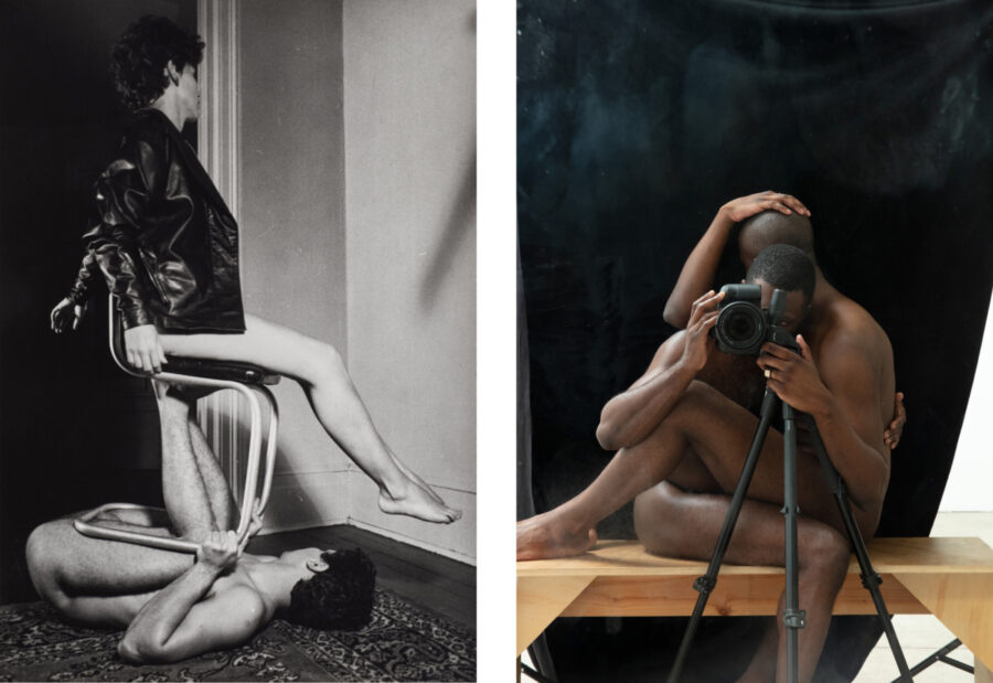 This intergenerational dialogue between the work of Jimmy DeSana and Paul Mpagi Sepuya unfolds as a set of carefully matched pairings. Both artists use photography to engage with queer bodies and the politics of representation, implicating the viewer as much as any figure who appears in the frame. Closely associated with New York City’s No Wave and downtown art scenes in the late 1970s and employing a rich array of photographic processes, DeSana drew on Surrealism in presenting bodies in confusing entanglement with everyday objects as well as one another. Anticipating the sexual anxieties of the imminent AIDS crisis, he infused queer erotics with equal parts absurdity and dread. Beginning his career in the mid-2000s, Sepuya’s work comes from his intimate involvement and collaboration with queer communities on both U.S. coasts. The desiring gaze can only take in Sepuya’s bodies via fragmentation, mirroring or the clever reproduction of his previous photographs; effects meticulously produced by Sepuya in the studio rather than by any digital manipulation. Side by side, DeSana and Sepuya remind us that queer aesthetics—much like queer liberation—is a continual process, never far from the lived, corporeal world.
