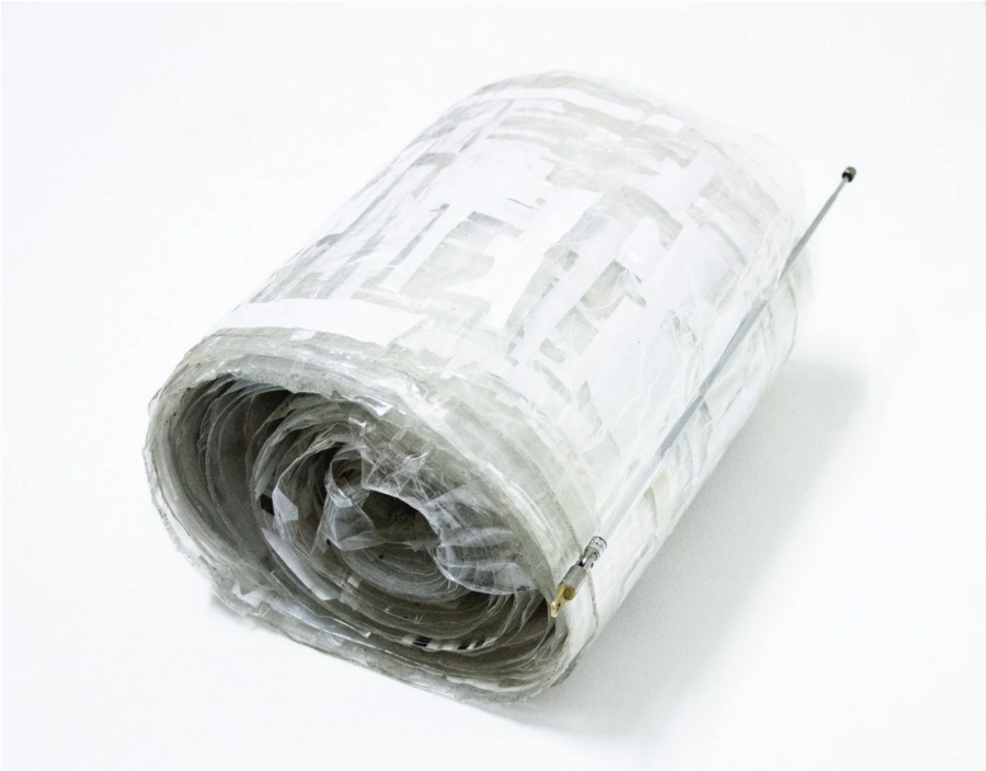 Baeโs scroll draws from three radio instruction manuals, sources designed to transmit information clearly and efficiently. By isolating punctuation, diagrams, and residual marks from these texts, Bae redirected attention away from instruction and toward what remains once printed language is stripped of its intended functions. The resulting visual abstraction evokes multiple reference points at once: ancient scrolls, Modernist musical notation, and the gestural mark-making associated with Abstract Expressionism. Bae described his interest in the โleftover margins, blank negative shapes, disassociated symbols and punctuationโ that tend to disappear when systems prioritize clarity, order, and rule-following.