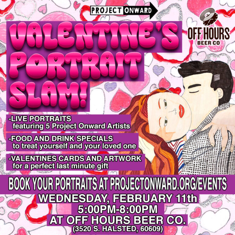 Join Project Onward (a non-profit studio and gallery for artists with mental and developmental disabilities) for a special Portrait Slam at Off Hours Beer Co. inside the historic Ramova Theater. From 5:00–8:00 PM, five Project Onward artists will be creating one-of-a-kind, hand-drawn portraits on the spot. Food and drink specials will be available at Off Hours during the slam. Artwork will also be available for sale, a perfect time to buy any last minute Valentine’s gifts for a loved one.