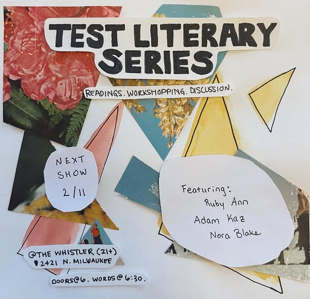Tags: Adam Kaz, Chicago, Logan Square, Nora Blake, Ruby Ann, Test Literary Series, The Whistler
