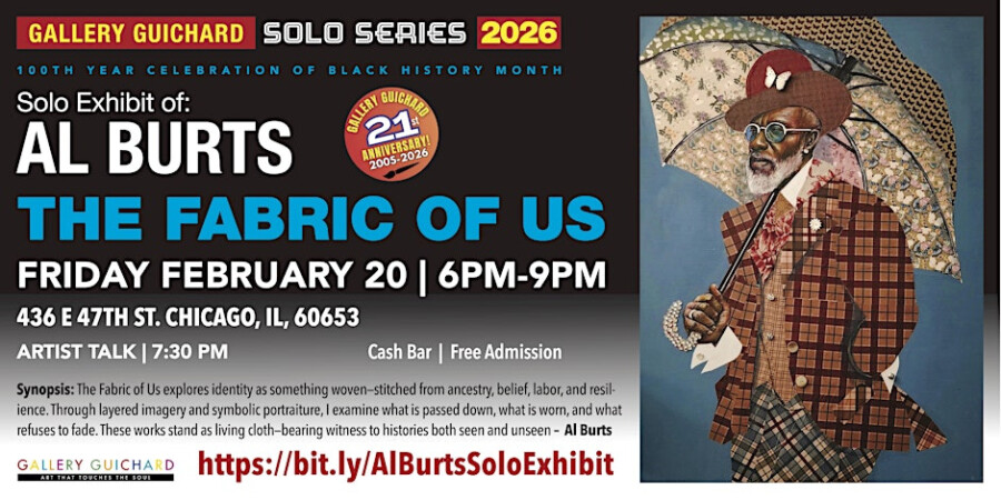 The Fabric of Us, solo exhibition of Al Burt’s February 20, 2025 6 pm to 9 pm at Gallery Guichard!