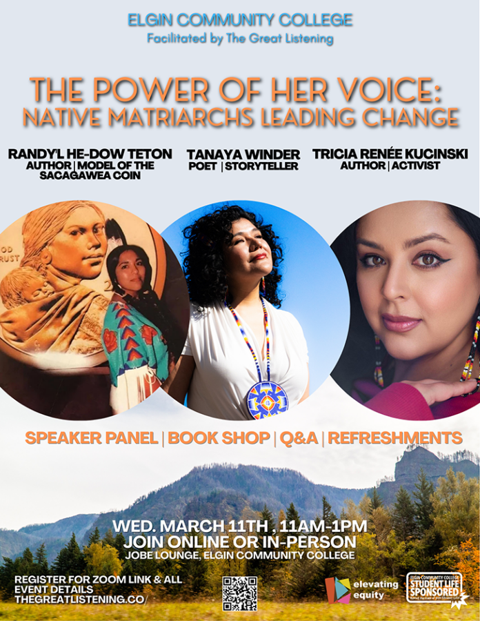 Tags: Elgin Community College Jobe Lounge, Randy’L Teton, Tanaya Winder: Duckwater, The Power of Her Voice: Native Matriarchs Leading Change, Tricia Renee Kucinski