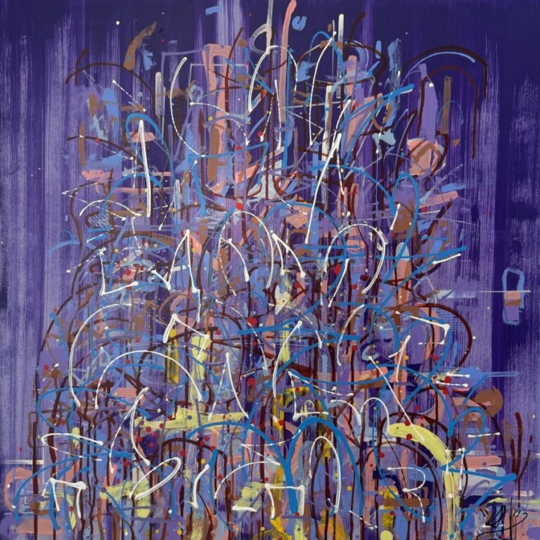 Waves: Up From Here is an art exhibition inspired by the acclaimed Los Angeles trio, Moonchild’s latest emotionally raw album, Waves, released in collaboration with ONErpm. Delving into themes on relationships, fear, grief, resilience, healing and self-worth, the album evokes an overall mood of transcendence and stepping into one’s own power. The album’s fourth track, Up From Here, played a meaningful role in the curatorial process, as its themes of self-awareness, reflection and resilience influenced the direction of the artwork. Waves: Up From Here features work by Braimah Lawal, Cydney M. Lewis, Fontaine Scarelli, Ish Muhammad, Jamiah Calvin, Ravi Arupa and Sally Ko and is curated by Kimberly Leja Atwood, Director of Elephant Room Gallery in Chicago. Melding various mediums, color palettes and styles, the pieces in this exhibition share a common thread that is all about the mood of the music found in Waves.