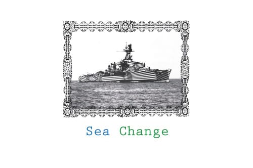 Sea Change is the inaugural show for The Meadow. It is a collaborative installation by Karolina Gnatowski and Diana Guerrero-Maciá. The installation explores camouflage (specifically Dazzle camouflage) as a means for transformation.