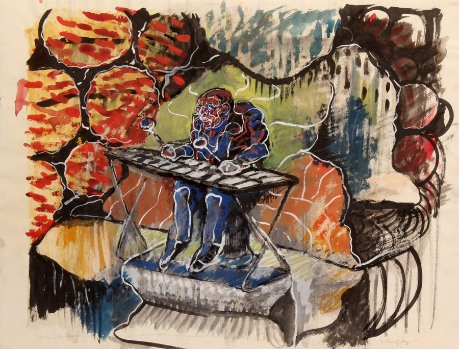 Image: Xylophone Player, 1965, gouache and watercolor on paper, 19â x 25â