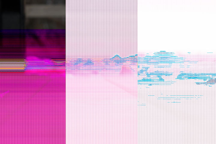 In Anthology, ideas of authorship, the permanence of imagery, and the limitations of photography are questioned and undermined. Using image data recovery programs, Meerdo excavates erased images from used memory cards he buys off of eBay and Craigslist. The life of a memory card – photographing, deleting, transferring, re-photographing – can generate incomplete data that is left behind. During the recovery process, these resurrected images become fragmented juxtapositions of composition and hue, creating a visual hybrid of a photograph as a representational image and a photograph as data.