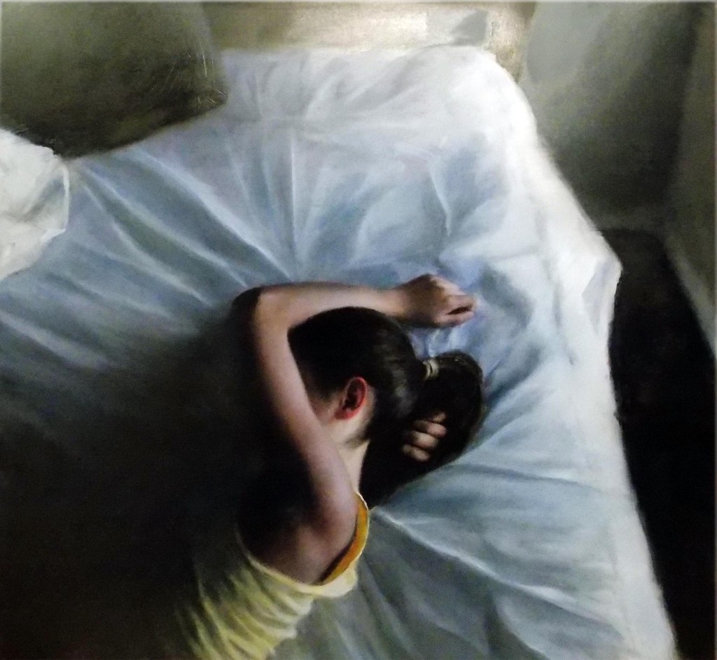 Chicago based artist Elsa Muñoz’s paintings that depict diverse subject matter from meditative portraits to moody landscapes are united by her use of stylistic realism, instilling a sense of masterfully balanced beauty and tension into each scene. Muñoz bases her paintings on her own photographic material in order to seize a temporary moment with its light or a certain pose and prolongs the initial sense of a subject by painting it as realistically as possible. Using painting as a more expressive means than just photography through her keen sense of design and mastery of the medium, Muñoz’s work captures the fleeting thoughts and feelings of a moment.