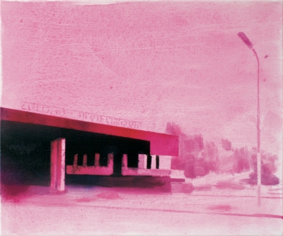 In Fringe Area, Felix Malnig’s second solo show with the gallery, this Vienna-based artist reveals how architecture and planned urban and suburban landscapes become representative of current economic, social and political conditions. The paintings reflect the fragility of the built and unbuilt structures that define our cultural systems. Using spray paint and other assertively material-based processes and techniques, Malnig creates scenes that are both subtle and evocative while retaining a raw edge directly linked to his subjects.