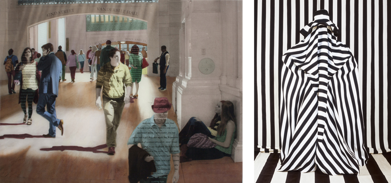Sherry Karver combines her photographs of people in crowds paired with archival images taken in the same spaces through multiple techniques: oil painting, digital technology, narrative text, and resin. The end result is a piece that embodies the “loneliness and alienation in our fast-paced society” along with highlighting “how we can stand out from the ‘sea of sameness’”. Karver sees the connection between street photography and history as a way to document and come to terms with living in our contemporary urban society.