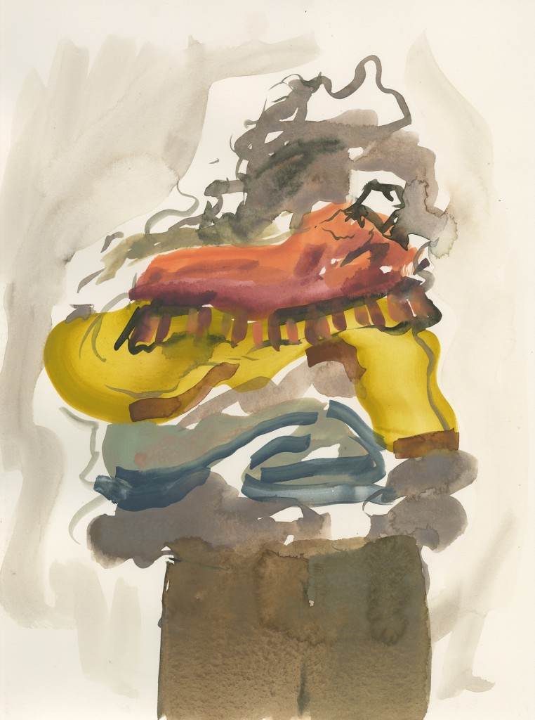 Jason Dunda is dragging color along and feeling the weight of it as he moves it. Building by digging, leveling the ground, and then stacking. Stacking color. There seems to be some sweat along the way. The paintings aren’t quite clear about good or bad, nor really what an unknown someone looks like. Dunda looks at power and its assumptions. He looks at the act of shrinking away from power’s gaze. He puts the look and looked at together and we’re left to look at the results of his collapse.