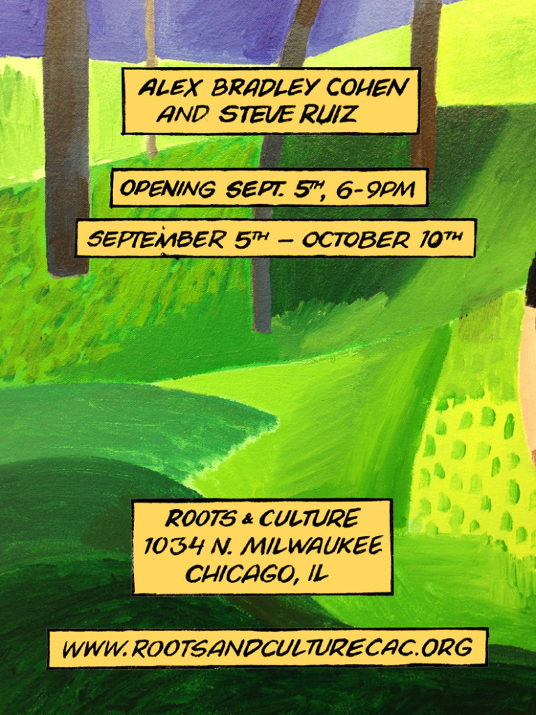 Alex Bradley Cohen lives and works in Chicago, IL. Cohen is an alumnus of The School of the Art Institute of Chicago and Skowhegan School of Painting and Sculpture. He is recipient of the 2014 James Nelson Raymond Fellowship. Recent exhibitions include The Craft and Folk Art Museum, Los Angeles, CA and The Elmhurst Art Museum, Elmhurst, IL. His work was featured on the cover of New American Paintings (issue 113, 2014).