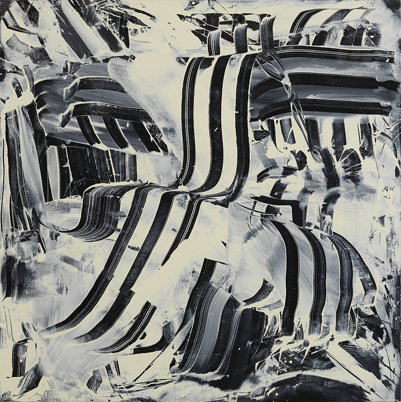 This is to invite, not to describe. The paint alone describes its movements, its presence, its qualities. The canvases, stretched, allow for this. This is what happened: decisions, chances, accidents, denials, acceptances, responses, and over and over again. Only onto and across these surfaces, yet seemingly in and out and off of them. Framed by the paintings, these movements are held. If spaces can be defined by their capacities for certain movements within, then Judith Geichman’s new paintings appear to suggest spaces in states of constant redefinition brought on by shifting layers of paint being scraped, raked, combed and pulled across grounds by a series of unconventional implements. Extracted moments from an unsettled fluidity, like a single frame of film from a 30 second long, animated dance sequence. We look to the edges for clues of what came before and what is yet to come. Perhaps we can find these moments as we ourselves transition from one painting to the next. Physically traversing those spaces as they become defined by imagined movements of paint; marks expand, they recede, they come into being, and then move along, making and unmaking themselves until we stop again.