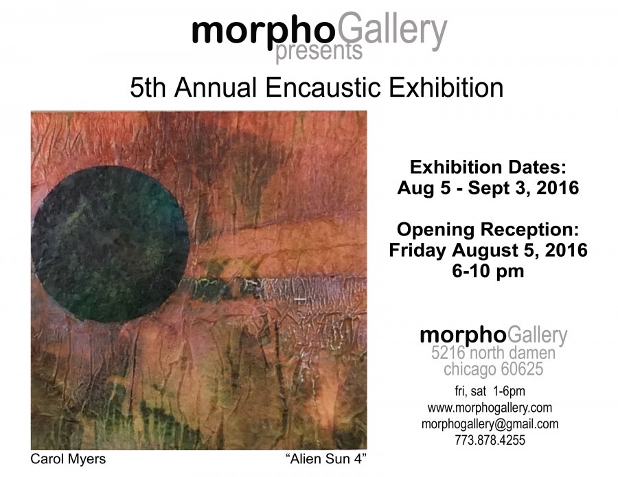 August 2016 (Chicago) – Morpho Gallery is pleased to welcome back jurors Kathy Blankley Roman and Kathleen Waterloo for their fifth juried encaustic exhibition. After the success of past years’ exhibitions, Edges, Hot Wax in the City and Wax(in’) Blue, Unbound(ed), Waterloo and Roman return to present the 5th Annual Encaustic Exhibition.