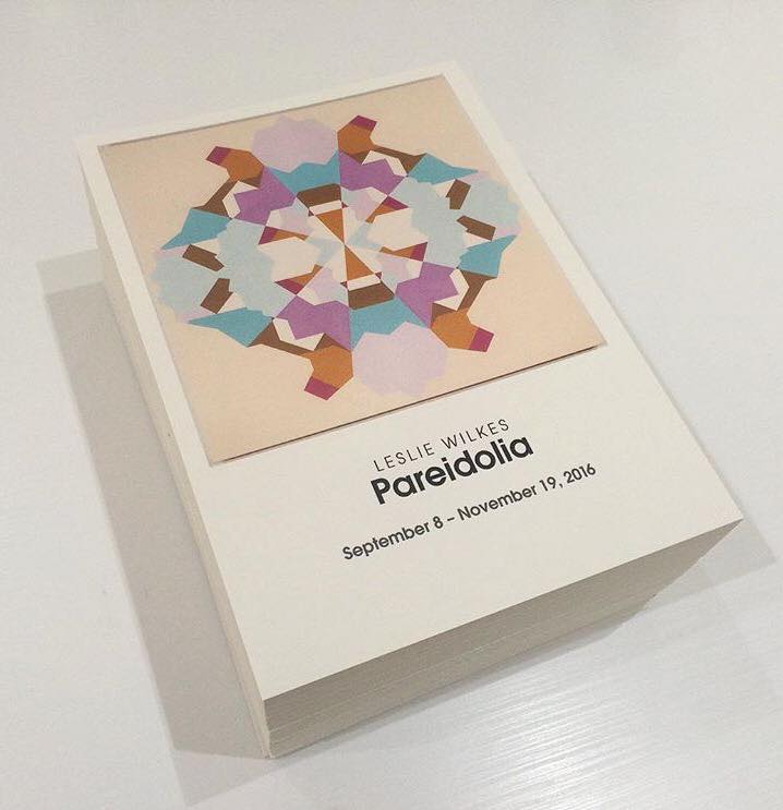 Beginning with a geometric pattern, Wilkes divides an initial compositional sketch into sections resulting in a shape that becomes the basis for a painting and/or gouache. On top of this shape Wilkes places another pattern, adds color, and isolates new shapes into symmetrical arrangements, each decision being influenced from the previous choice of form and color. Paint is applied without the use of masking tape creating soft, hard-edges that contain slight irregularities and subtle shifts in pattern. Considering them “accidental mandalas”, Wilkes’ process continues until she defines the last shape and color, resulting in an organic, spontaneous, kaleidoscopic image.