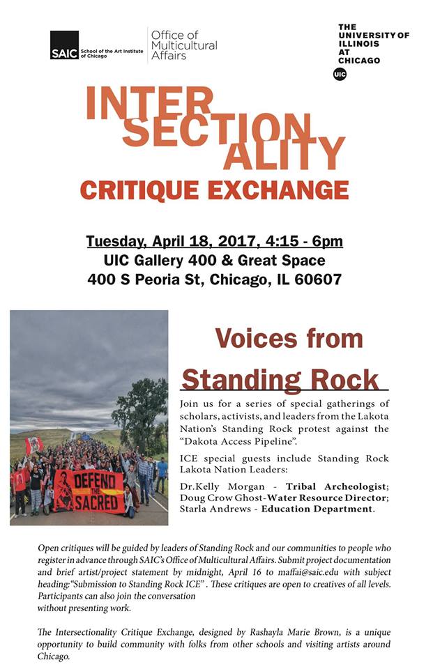 Tags: Chicago, Doug Crow Ghost, Dr.Kelly Morgan, Gallery 400, Intersectionality Critique Exchange, near west side, Starla Andrews, Voices from Standing Rock