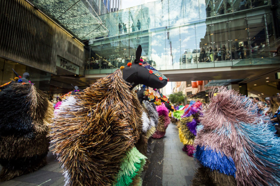 As part of Here Hear Chicago, the locally-based duo, Cave and Gang, will present a series of live productions in which Cave’s performers will interact with and respond to a set of dynamic, custom-fabricated “Stage Buoys,” designed by Gang and her practice, Studio Gang. The program kicks off with Cave’s newest performance work, Up Right Chicago, on Wednesday, September 13 at 9 p.m. in the Aon Grand Ballroom, coinciding with the preview opening night of EXPO CHICAGO (September 13 – 17, 2017) in Festival Hall. On Saturday, September 16, Cave will present his internationally-acclaimed HEARD Chicago at 1 p.m. and 3:30 p.m. in Polk Bros Park, as well as a Soundsuit invasion at 2 p.m. at the Wave Wall on the South Dock. Guests are encouraged to make their way to the Lake Stage on the Polk Bros Park Performance Lawns to catch a special 5 p.m. viewing of Here Hear Chicago on Screen, a collection of short films and documentary clips highlighting Cave’s iconic works. In the event of rain or inclement weather, HEARD Chicago will move to Sunday, September 17 in the Aon Grand Ballroom.