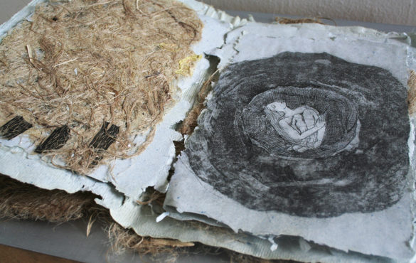Moussavi’s personal and intimate artwork consists of etchings and handmade paper. Through the process of layering and reconstructing handmade papers, she fuses the intricate and arresting forms found in her etchings with dynamic natural forms. Her work explores the ties between individual and environment, unearthing emotions, associations, and memories that one attaches to physical spaces to discover the abiding bond between nature and us.