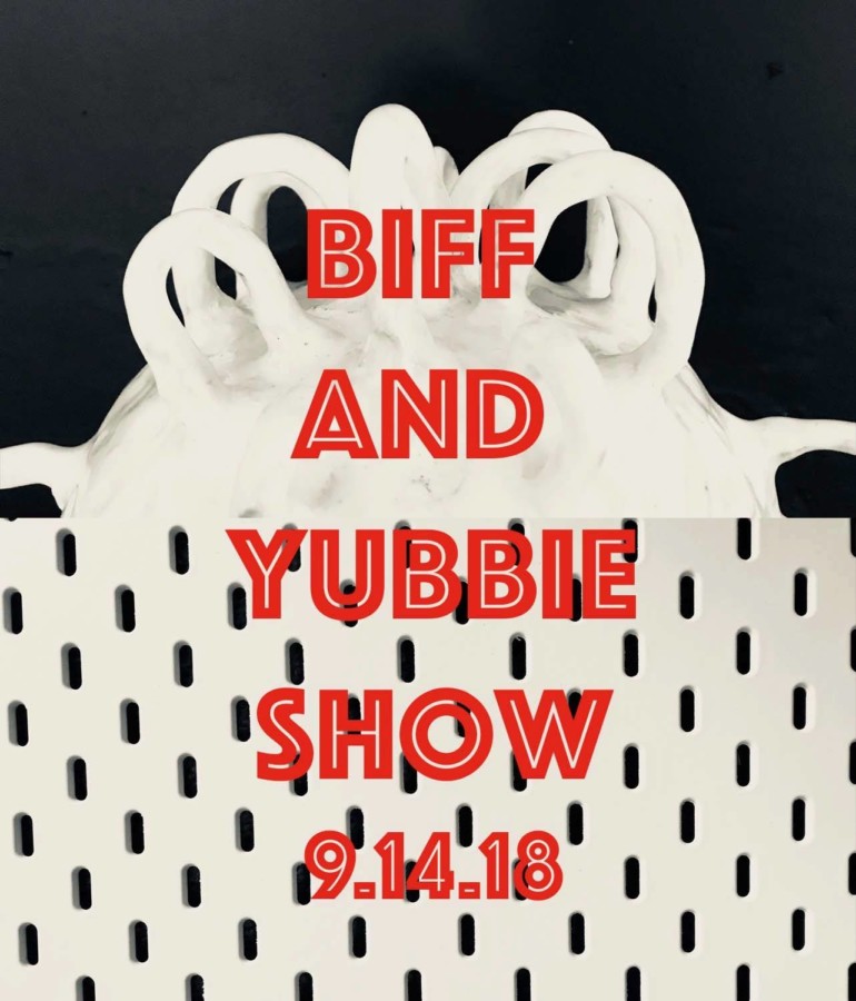 The Biff and Yubbie Show is a visual collaboration between two art lovers who have worked in a variety of creative cultural industries in Chicago for the past three decades. The title of the exhibit is a kind of inside joke that will resonate with people who have known them for many years.