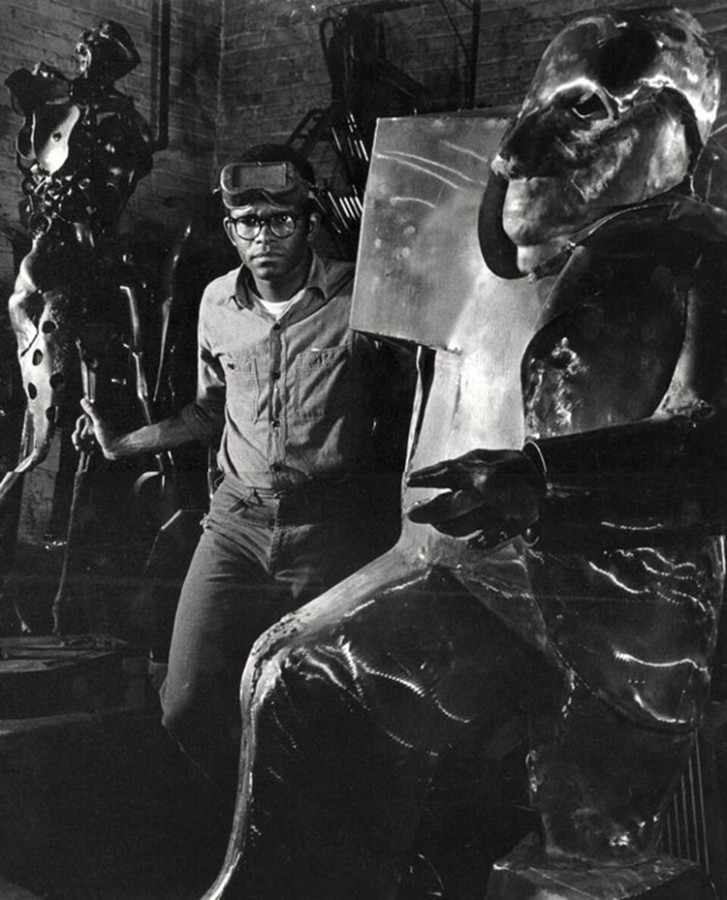 Richard Hunt developed his talent in the 1950s at The School of the Art Institute of Chicago with the guidance of two dynamic teachers—Nelli Bar and Egon Weiner. Bar and Weiner were both of a generation of artists who fled Europe after the rise of the Nazi regime and made Chicago their new home for their artistic ambitions. Both received their education in European academies under prominent teachers during the 1920s. Bar taught Hunt during his adolescence, and Egon Weiner was his college professor. Bar continued to make an impact on Hunt beyond his schooling as he recalls: “She has influenced me as a person over our 30-year relationship.” Hunt also remembered Weiner for “his exuberance and nurturing manner, and for being a bundle of energy.” This energy influenced and inspired his student. Hunt’s mastery developed so rapidly that the Museum of Modern Art purchased one of his sculptures in 1957 just after his graduation and eventually, he evolved into one of the most prominent Chicago sculptors and an international master.