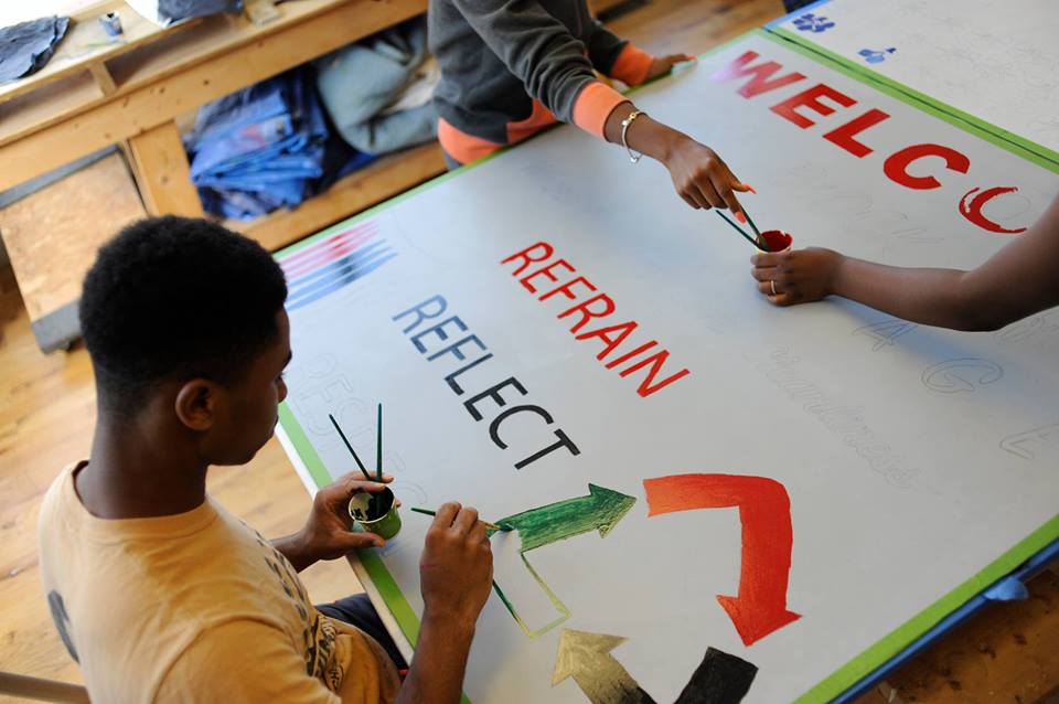 Reimagine what it means to be a neighbor! Community members of all ages are invited to participate in an interactive sign-making workshop. We have all seen signs in homes’ windows that state: WE CALL POLICE. Instead of this warning, what else could a sign to neighbors say or show? How can signs communicate what we want our blocks to be? Free and open to all!