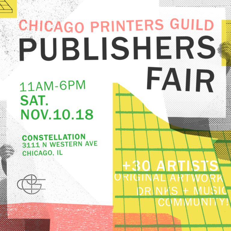This year, the Chicago Printers Guild announces its third iteration of the Chicago Printers Guild Publishers Fair to be held at Constellation in Roscoe Village, on Saturday, November 10.