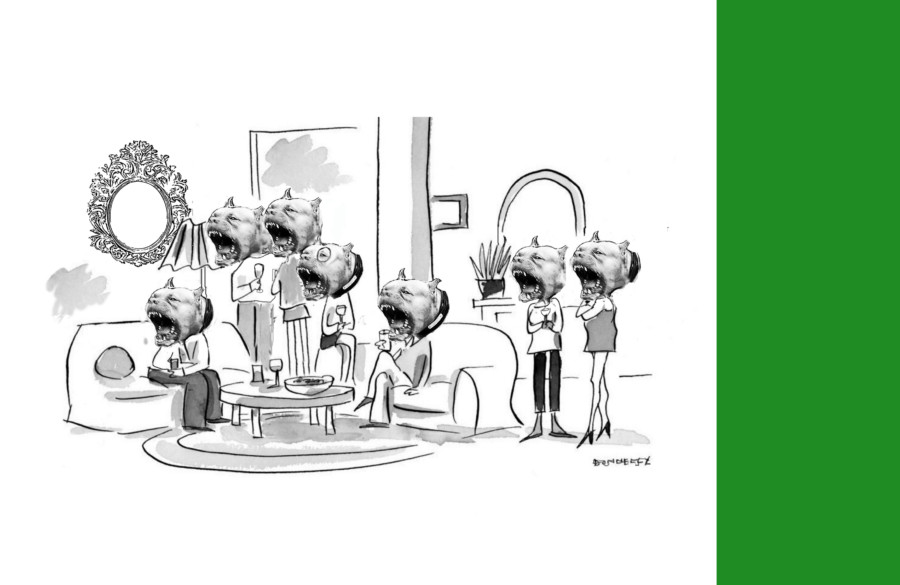 Pit bulls have been entrenched in a smear campaign for at least 50 years. Once seen as an embodiment of loyalty, they have become a sign for whites of racially charged violence. Pit bulls embody the fear of being invaded or overrun by those whose suppression fuels our comfort and privilege. Their reputation of viciousness and/or loyalty has fallen into an essentialist abyss wherein their detractors can declare that genes dictate behavior. This exhibition is not about pit bulls but the cultural fault line that they reveal. Objectionable as this may be, Green Door is not concerned with encouraging adoption, saving pit bulls from the canine kill box, nor with profiting through organized dogfighting. Utilizing these tableaux does not amount to the presentation of ideological arguments surrounding pit bulls. Rather, this installation provides visual means to question privilege, with pit bulls serving as an avatar. Green Door, thus, is an examination of how fear can take floating signifiers hostage.