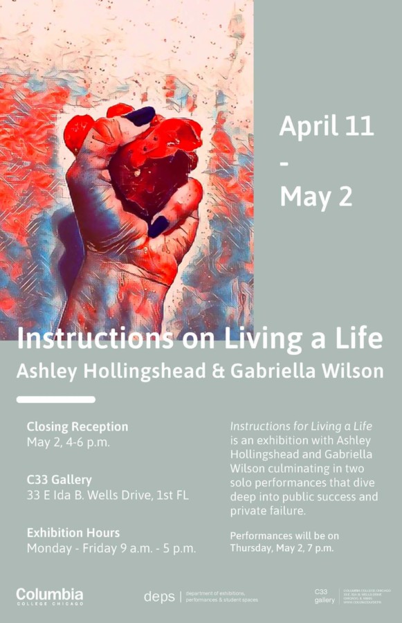 Tags: Ashley Hollingshead, C33 Gallery, Chicago, Columbia DEPS, Gabriella Wilson, Instructions for Living a Life, Loop