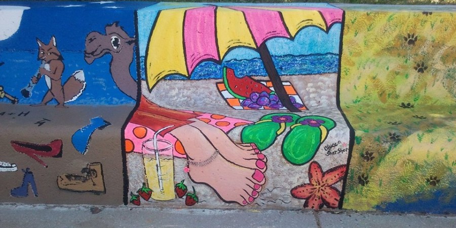 Every summer over Father’s Day weekend in Loyola Park, neighbors of all ages and backgrounds come together to collaborate on a 600-foot mural along the lakefront between Farwell and Morse Avenues. The artists finished works remain until May of the following the year when the wall is again prepped, whitewashed and readied for the next round of eager participants.